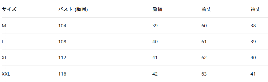 | XL | 37.0–38.6 | 29.1–30.7 | 39.4–40.9 |
